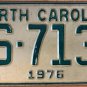 1976 North Carolina passenger truck license plate AS 6877. Good original paint but has some wear to it. Has some scratches on the numbers/letters/border trim. Could use some cleaning up. This particular tag was in a lot I bought that came from the next door neighbor of a DMV worker from back in the day. It entered his collection after being turned in so the car owner could get their new 1977 tag at the time so it has only seen a year's use before being put into storage.
