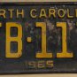 1982 North Carolina license plate YYX 597 with October 1984 sticker. Good original paint but has some wear to it